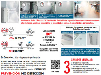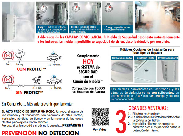 En pocos segundos el Cañón de niebla™ llena la estancia con una densa Niebla de Seguridad, de tal forma que al ladrón le resulta imposible ver su propia mano frente a su cara.